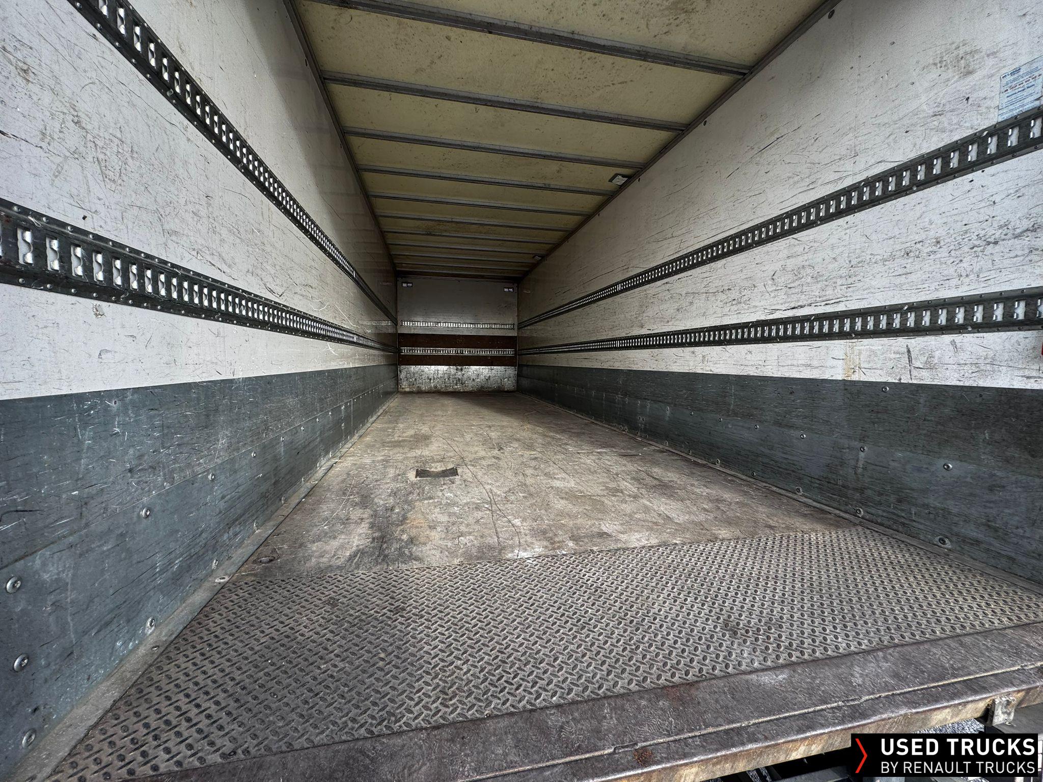 CARROSSERIE LABBE fourgon plywood 45 m3 messagerie : fermeture par plateau du hayon (profondeur 2400 mm), déflecteur de cabine, 2 plafonniers LED, plinthe (hauteur 500 mm), 2 niveaux de rails d'arrimage (h= 850 mm et 1400 mm), 2 butoirs à rouleaux, arrêts de rolls sur plateforme du hayon