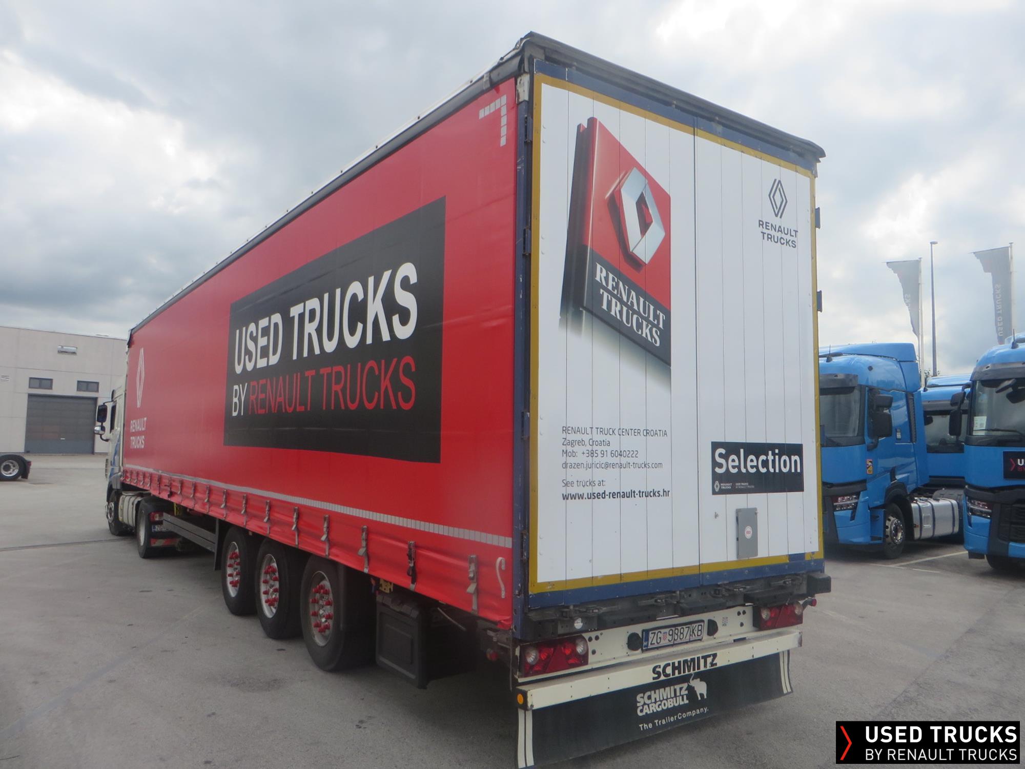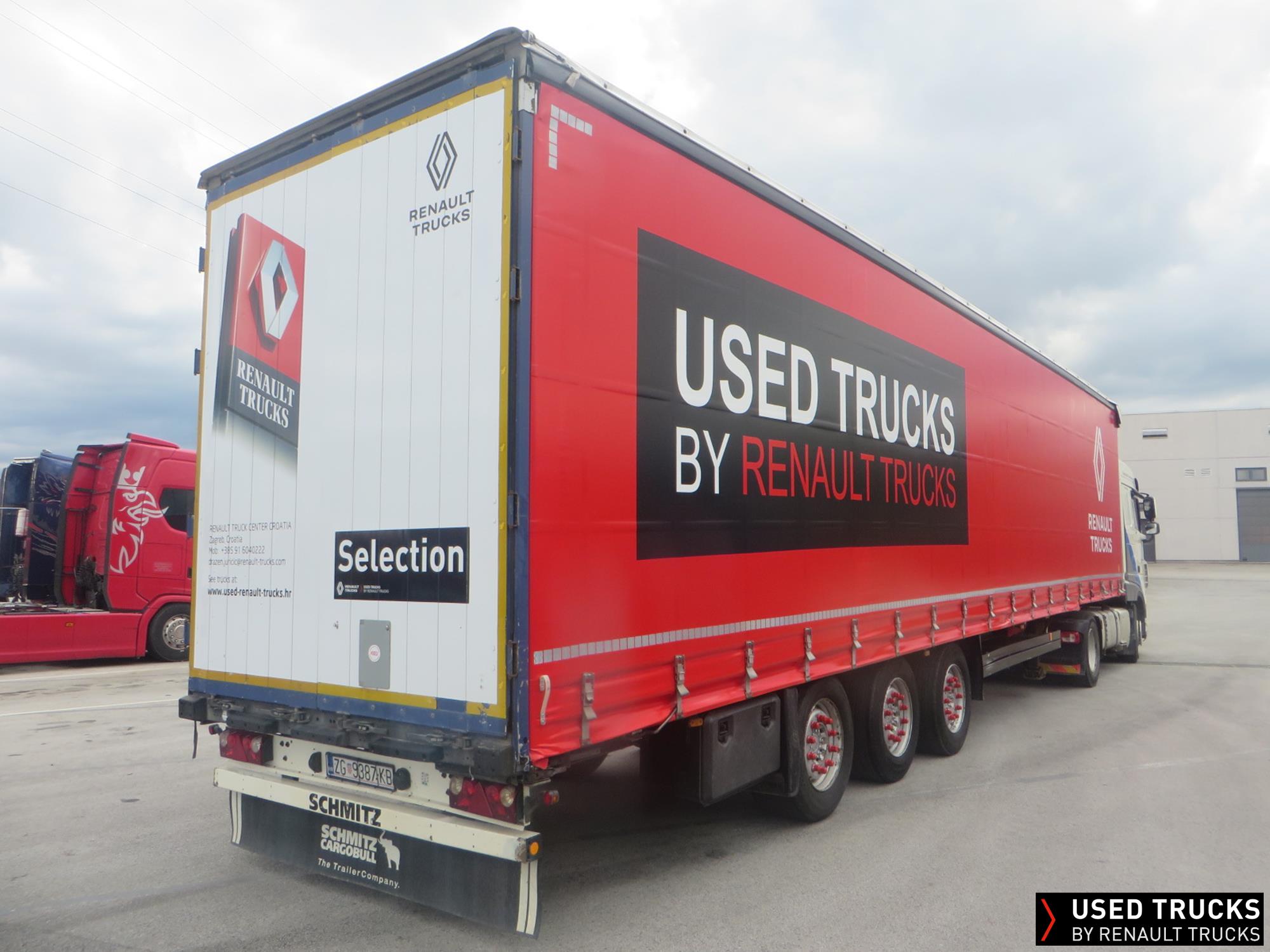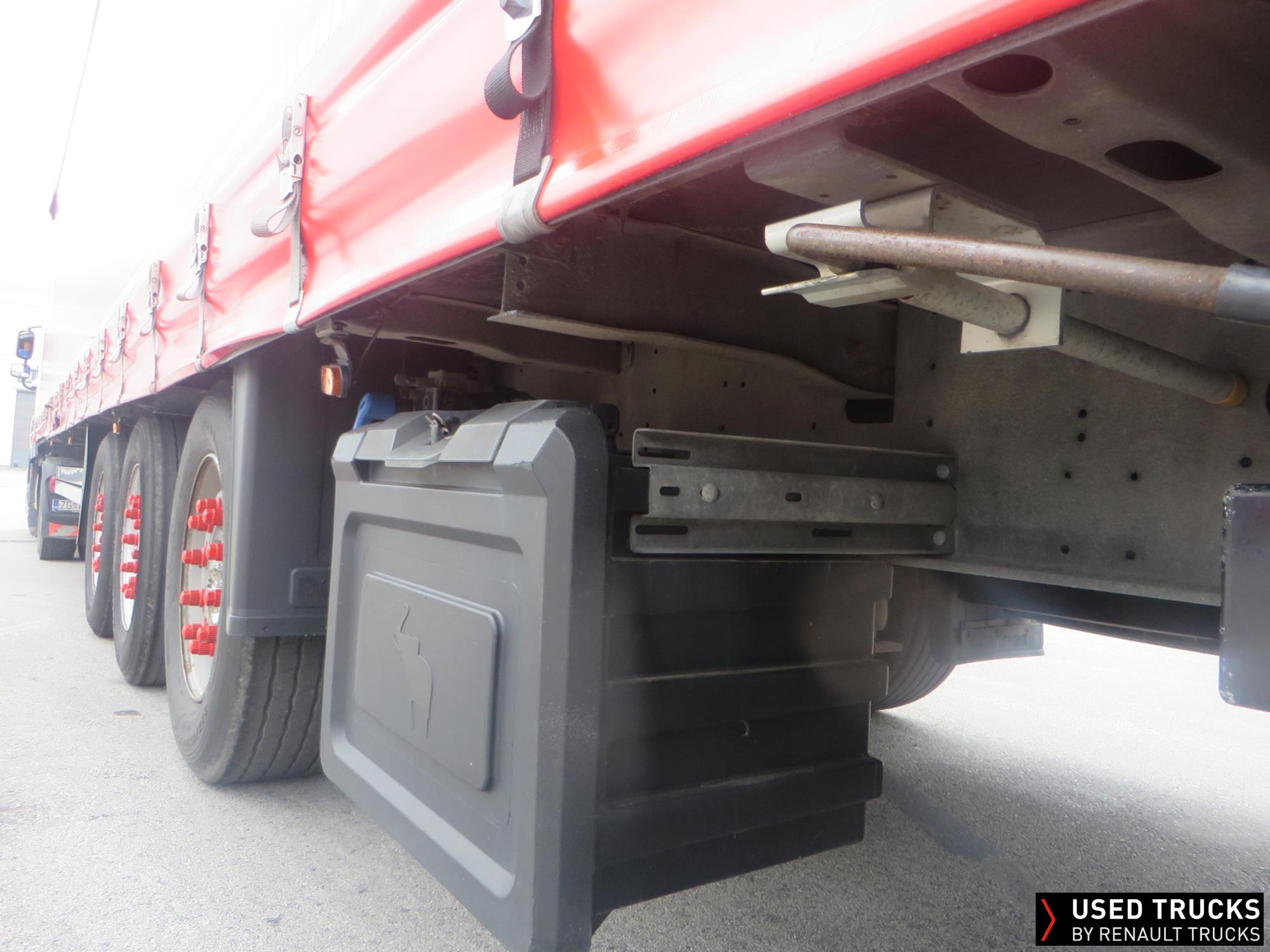 SCHMITZ tilt semitrailer varios, 4/ 2012, Schmitz axle, alu slats, lift roof, 385/55R22.5, spare tyres, NEW! Renault image tarpaulin + rear doors coverage